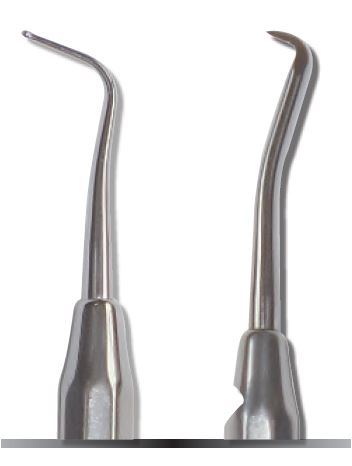 This tool opens all Experience brackets from the gingival. The blunt scaler type end fits within the opening notch between the two gingival tie wings both safely and effectively.