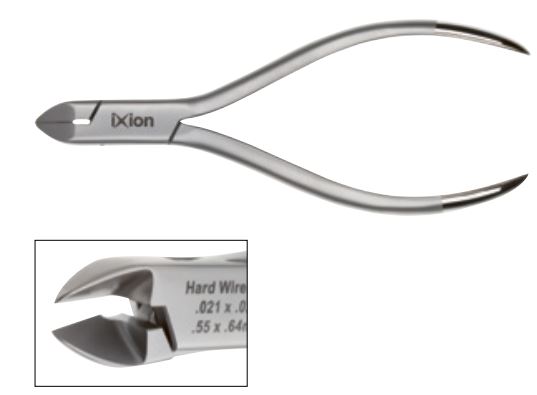ix906 Hard Wire Cutter 15 Angle Same features as standard hard wire cutter ix905 with the advantage of 15 angle for easier access to the posterior area. Minimum Cutting Capacity: .012" (.30mm) Maximum Cutting Capacity: archwires up to .021"x .025" (.55 x .64mm)