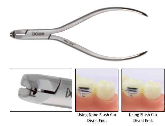 ix902s Flush Cut Distal End Cutter Standard / Small The flush cut feature of this instrument allows the archwire to be cut flush and safely held eliminating the possibility of patient discomfort resulting from archwire protrusion. ix902s Minimum Cutting Capacity: .012" (.30mm) ix902s Maximum Cutting Capacity: archwires up to .016" x .025" (.41 x .64mm)