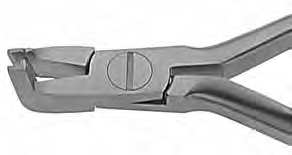 Distal End Cutter, Safety Hold - Shear cuts hard wire and then safety holds the loose distal end to prevent wire from going into tissue - Hard tool steel insert - Cut wire up to .021 x .025 (0.534mm x 0.635mm) and .026 (.66mm) round - Designed for intraoral cutting and lip safety - Made from selected surgical stainless steel to provide lasting beauty and durability - Not recommended for braided wire - Small beak