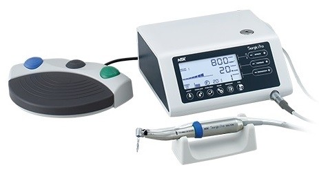 Surgical Motor System. NSK offers advanced technology to greatly enhance clinical performance. Surgic Pro is compact, lightweight and powerful to reliably deliver everything that professionals demand. Contents- Control Unit without data storage facility, SGL70M LED Micromotor, FC-78 Foot Control, X-SG20L Optic Handpiece (20:1 Reduction), Irrigation tube (5 pcs.) and other accessories. Specifications- Max. Pump Output 75 mL/min 8 Programs / Implant Systems Dimensions W265 x D220 x H100 (mm) Torque 5-80 Ncm Motor Speed 20040,000 min-1 Light Power(LED Micromotor) over 32,000 LUX Foot Control Functions: Program Button, Speed Control Pedal Coolant Solution Flow Volume Button Forward / Reverse Button.